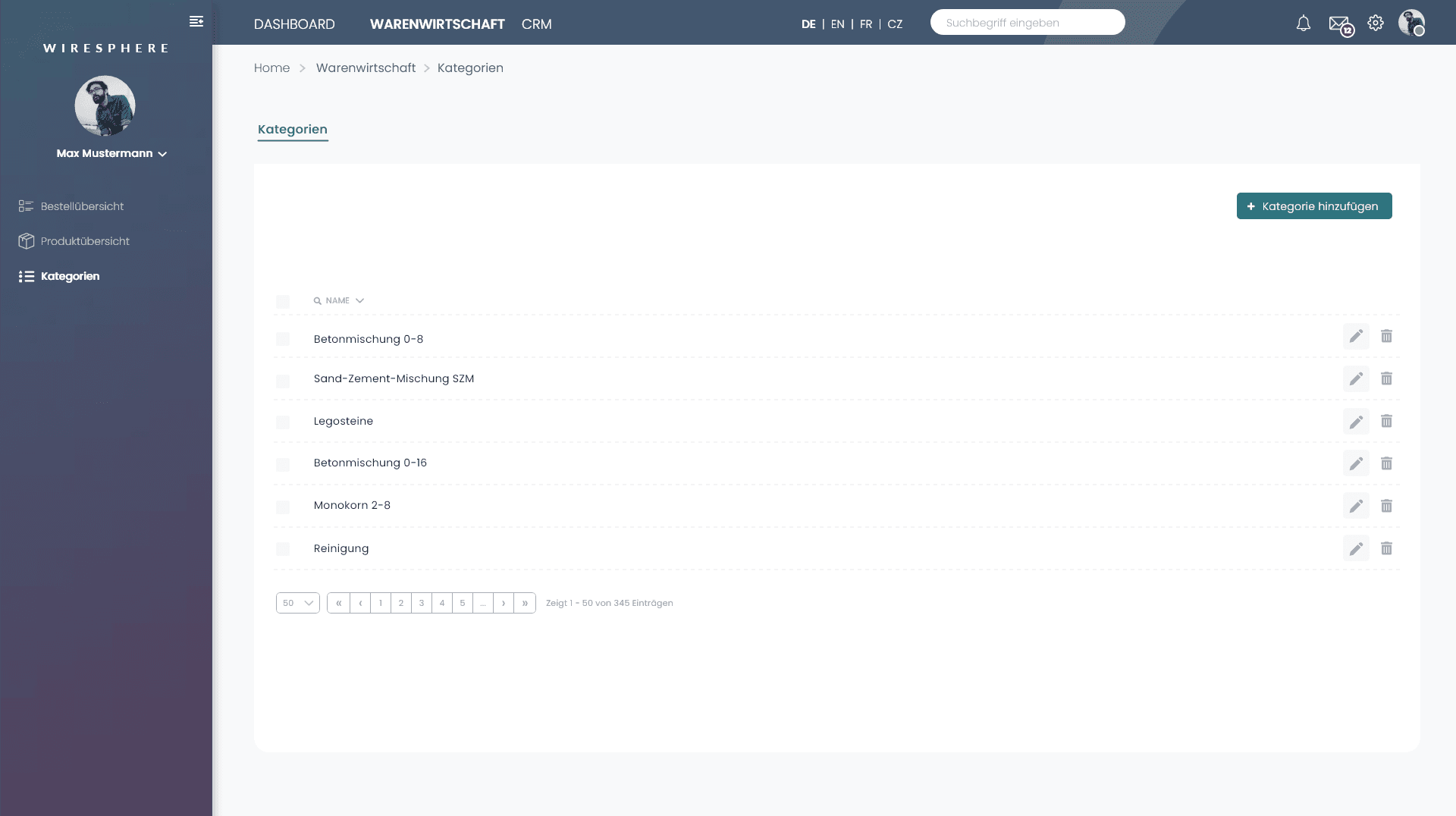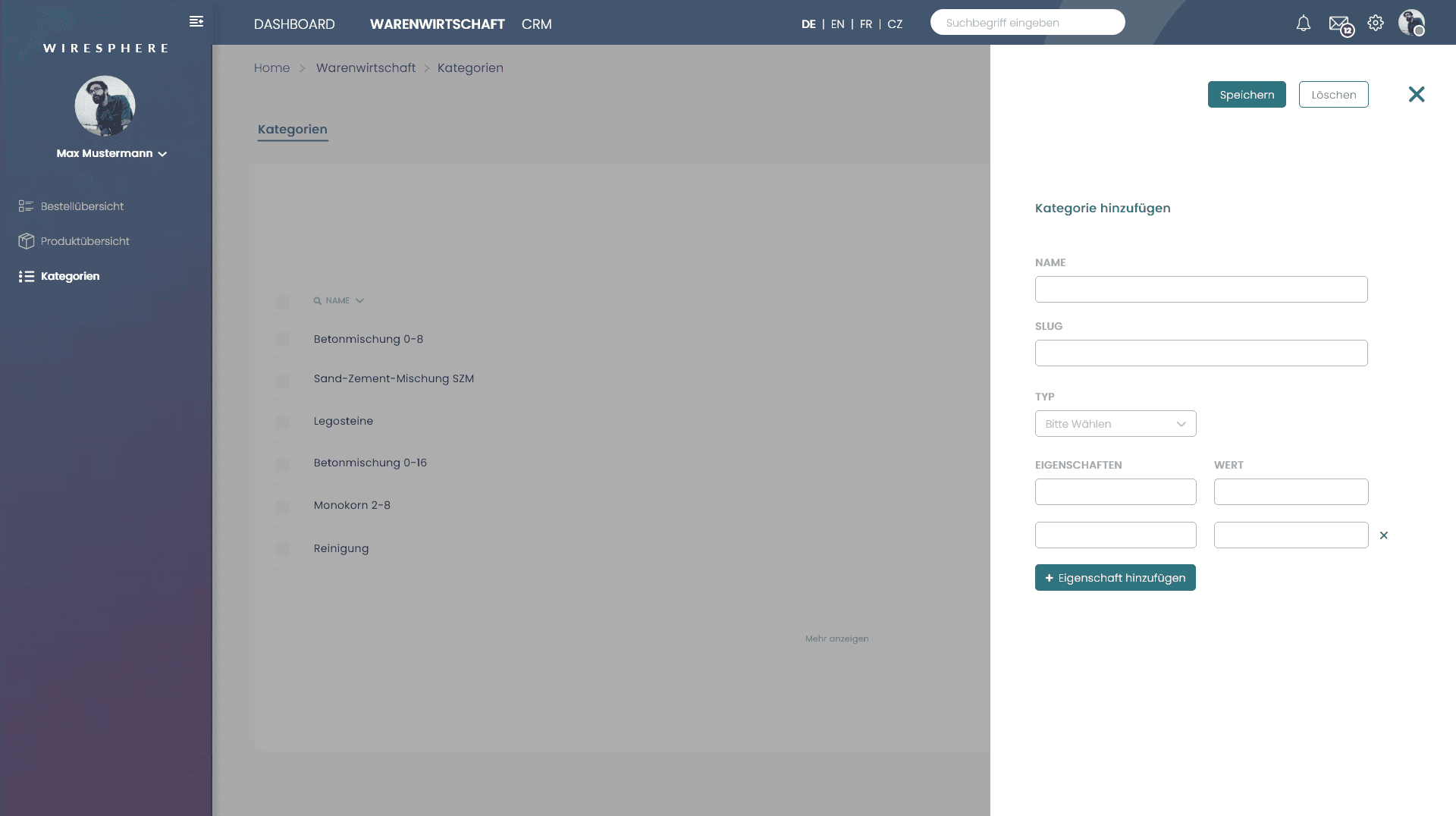 Mit der Funktion „+ Kategorie hinzufügen“ können Sie schnell neue Produktkategorien erstellen. Klicken Sie einfach auf diese Schaltfläche, um ein Formular zu öffnen, in dem Sie den Namen der neuen Kategorie und gegebenenfalls weitere Informationen eingeben können. Eine detaillierter Beschreibung von Eingabe Felder sehen hier hier unter.